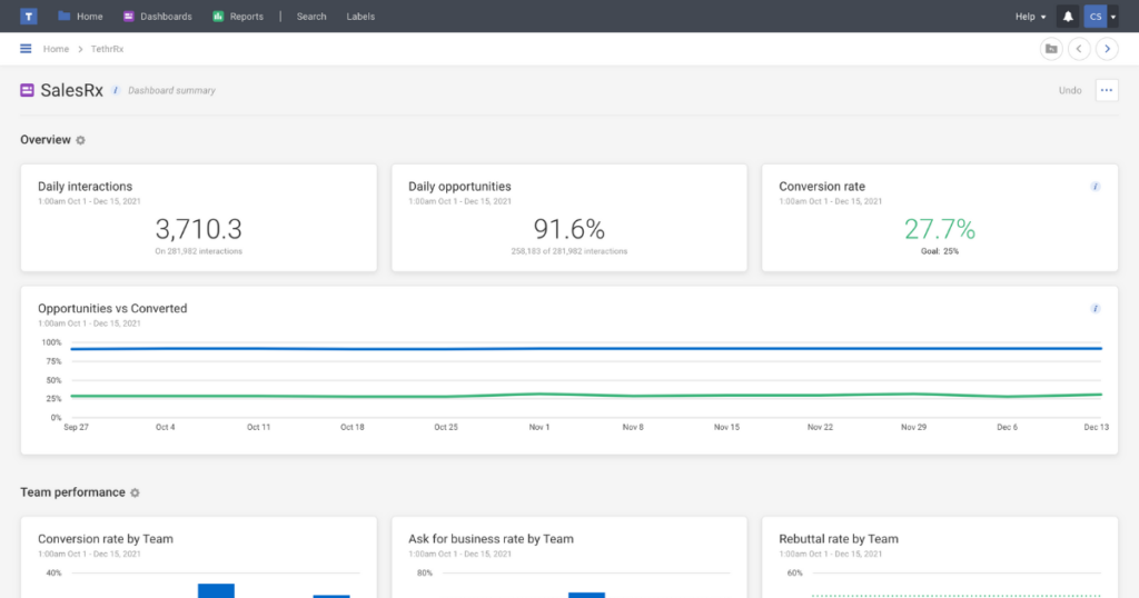 Key takeaway: TethrRx offers sales leaders serious insights into their team’s successes and failures on both a macro and micro level.